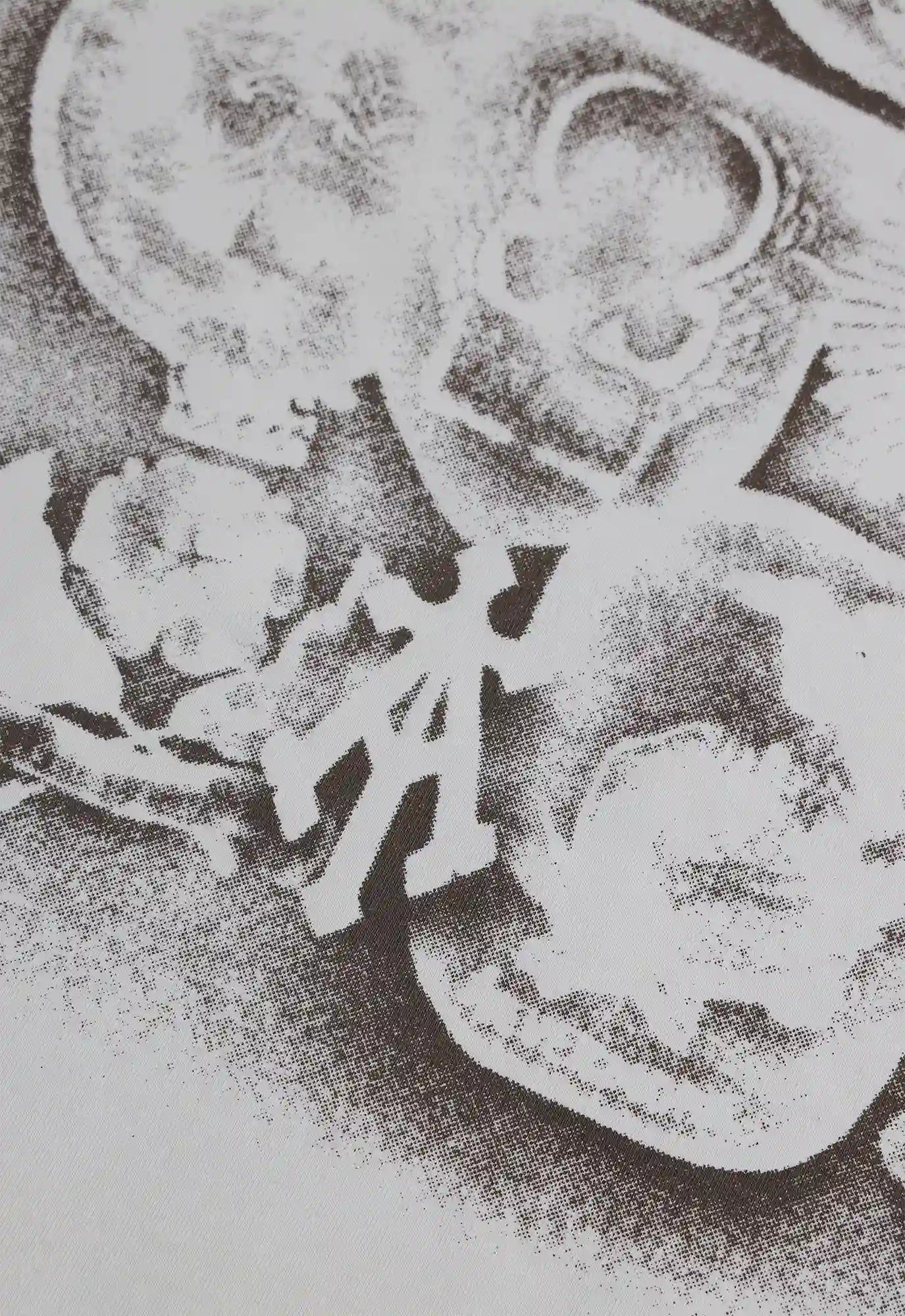 Relaxed-fit tee featuring a fading tapestry of Vietnam War-era badges, rendered in a fading spray-paint effect.