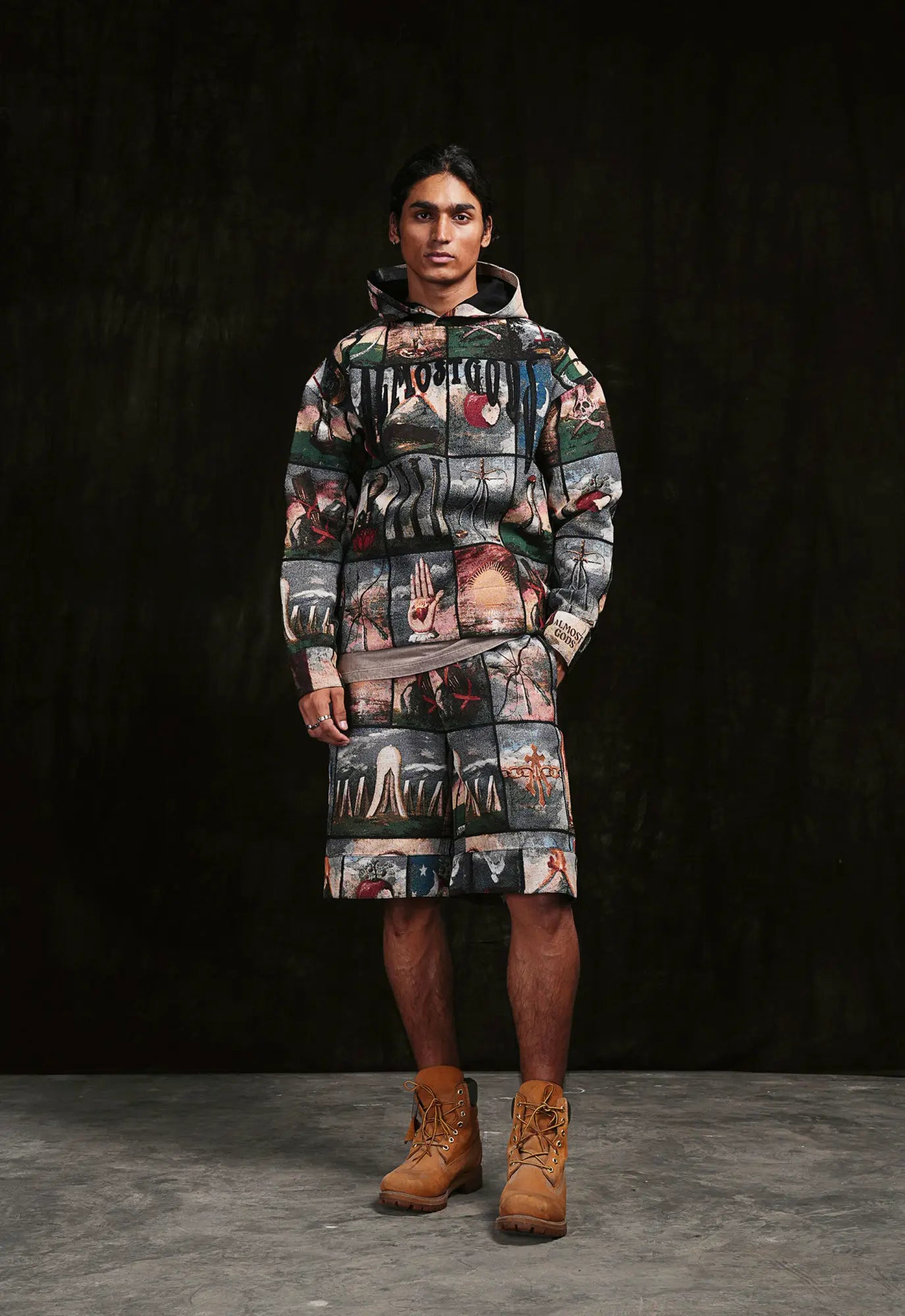 Custom Almost Gods’ Jacquard Arcana featuring a collection of various brand symbols; including the signature Alpha Cross, Serpentine motif and Chain Link graphic.
