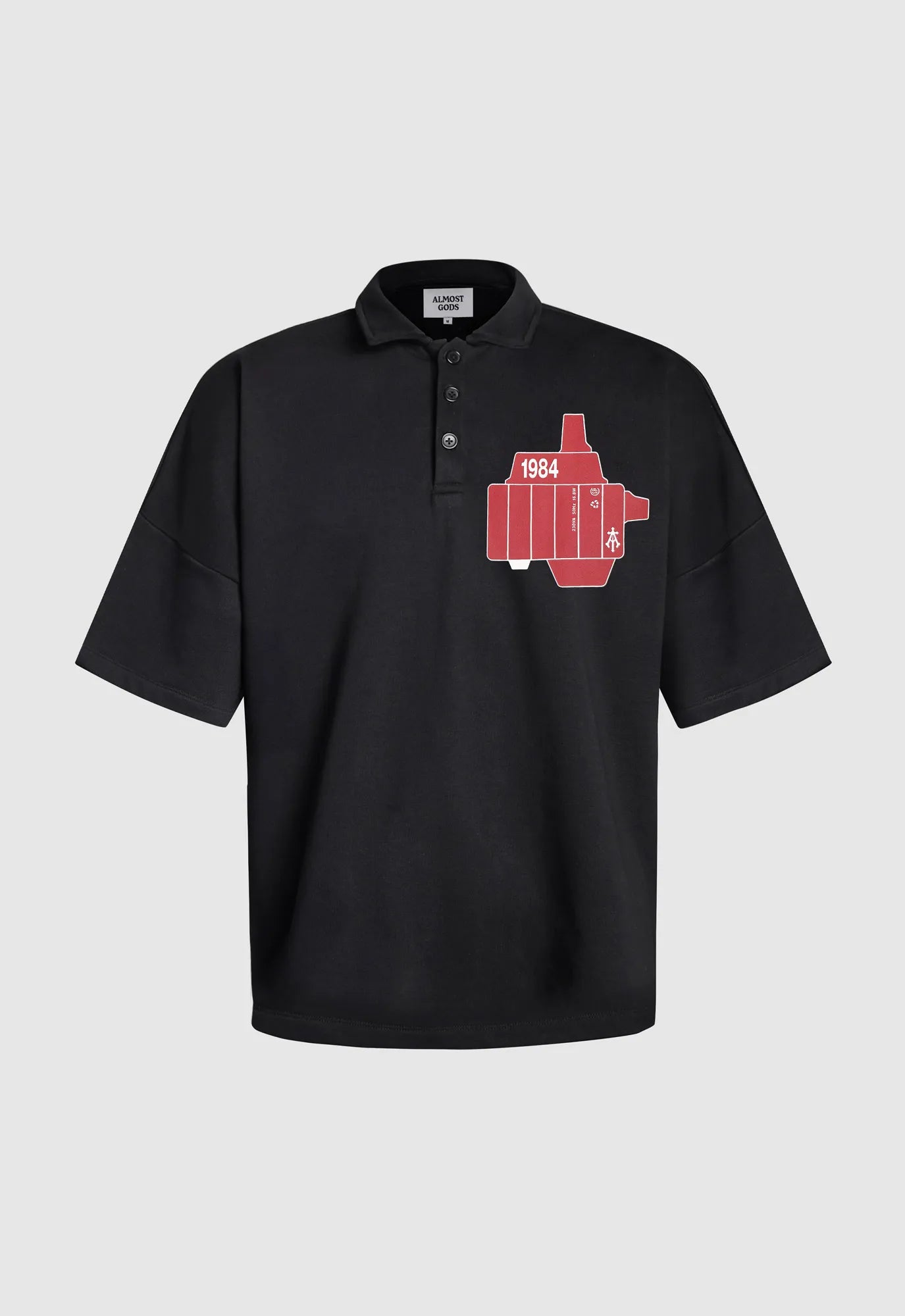 Boxy fit polo featuring Erased Tapes artwork by Kunel Gaur in front.